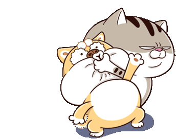 Ami Fat Cat gently holds a distressed, crying dog, seemingly trying to comfort or quiet it with a 'shhh' gesture.