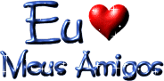Animated sticker featuring the Portuguese phrase 'Amigos, Eu Meus Amigos!' celebrating friendship and companionship.