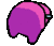 A pixel art drawing of a pink Among Us character, known as Amogus, with a purple hat.