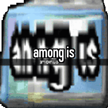 An animated sticker featuring the distorted 'Among Is' meme, a popular reference to the game Among Us.