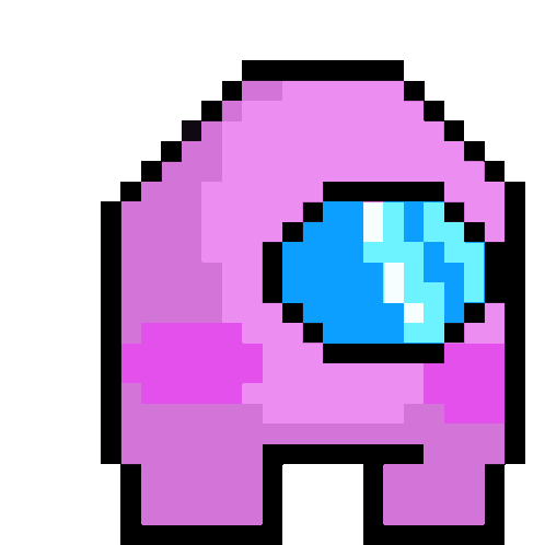 Animated pixel art sticker featuring a pink Among Us character with a blue visor, perfect for adding a fun touch to messages.