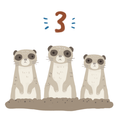 Three adorable meerkats pop up from the ground, counting down to a joyful Happy New Year celebration.