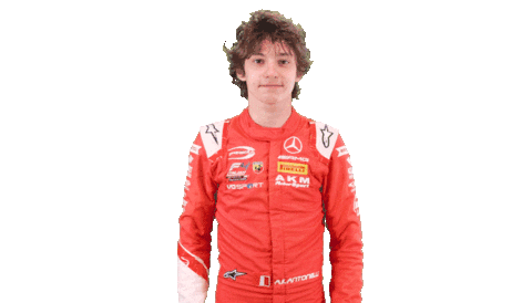 Andrea Kimi Antonelli, a young racing driver, shrugs with an 'I don't know' expression in his red racing suit.