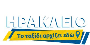 Anek Lines sticker featuring 'Heraklion' and the slogan 'The journey begins here' in Greek, with a travel theme.
