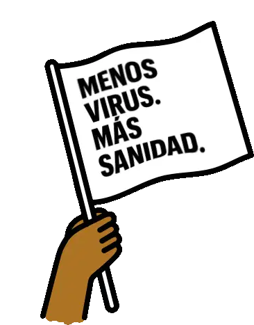 Animated text from Anesvad advocating for 'Less Virus, More Health' with the phrase 'Sanidad Por Bandera'.