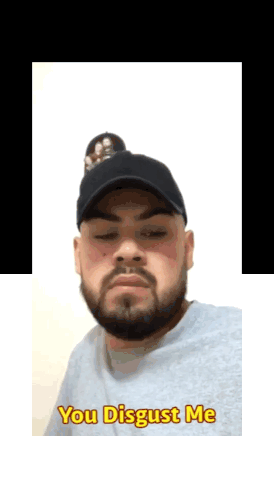 Angel Gonzalez expresses disgust with a stern look and the caption 'You Disgust Me'.