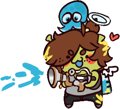 Angeliel, the Octoling from Splatoon, holds a flashlight with a blue octopus on their head.