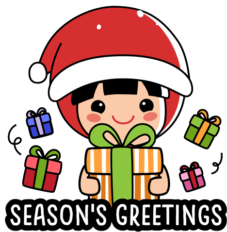 Angkukuehgirl celebrates the holidays, surrounded by colorful gifts and spreading season's greetings with a cheerful smile.