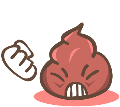 An animated sticker of an angry, reddish-brown pile of poo with a fist punching out, expressing extreme fury.