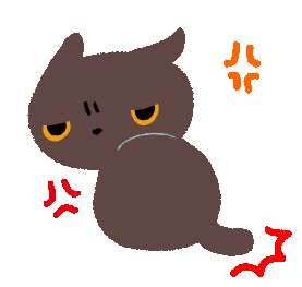 An animated sticker featuring Kutsushita Nyanko, the brown cat, looking very angry with a frown and red anger marks.