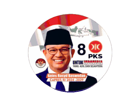 Anies Baswedan's presidential campaign sticker for RI 2024-2029, featuring slogans like 'Satu Putaran' and 'AMIN 1'.