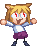 Neko Arc, the pixelated cat-eared character, joyfully jumps with outstretched arms in this animated sticker.
