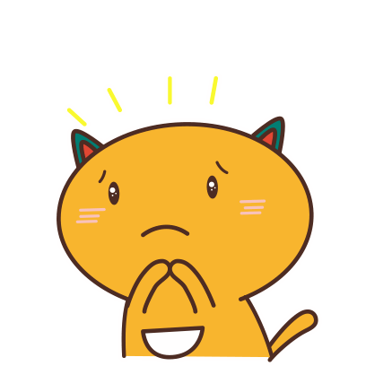 A cute cartoon kitty cat with a sad, pleading expression, clasping its paws together, asking for forgiveness.