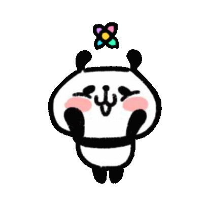 A cute animated panda bear with rosy cheeks and a colorful flower on its head, looking happy and content.
