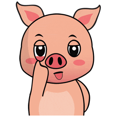 A cute cartoon pig character with rosy cheeks playfully raises a finger to its mouth, making a teasing gesture.