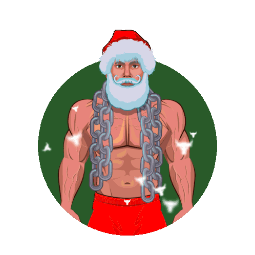 a shirtless santa claus with chains around his neck and the words merry christmas on the bottom