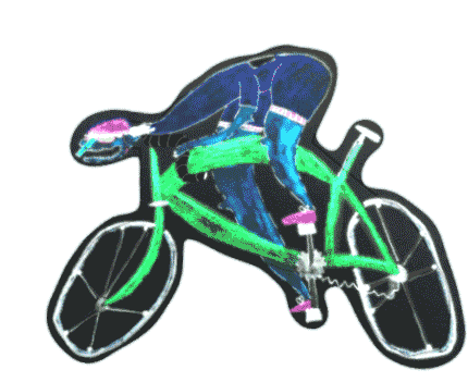 Peter Sagan, the cyclist, glows with neon light while riding in a yellow jersey, capturing the energy of the Tour de France.