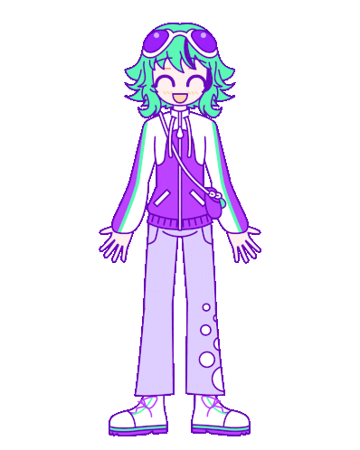 a cartoon of a girl with green hair and purple clothes