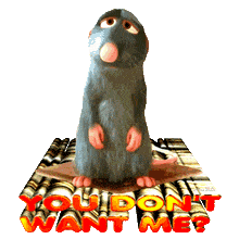 A dejected Remy from Ratatouille spins slowly, displaying the text 'YOU DON'T WANT ME?'. A sticker expressing feelings of rejection.