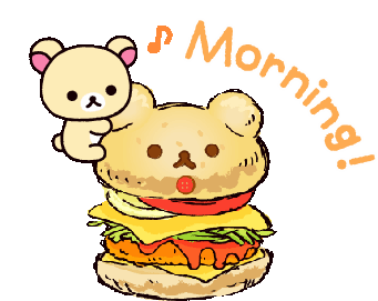 A cute animated sticker featuring a bear character on a bear-shaped cheeseburger, with 'Morning' appearing as a friendly greeting.