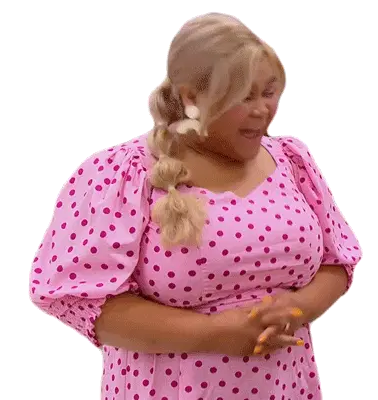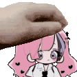 Ann, a pink-haired girl, has her head gently held by a hand in this stylized drawing.