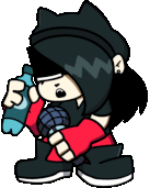 Annie Down, a pixel art character, is depicted holding a microphone and a bottle of water in this animated sticker.