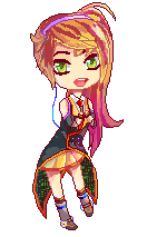 Anon Vocaloid, a vibrant chibi pixel art character, animatedly sings or dances with headphones on.
