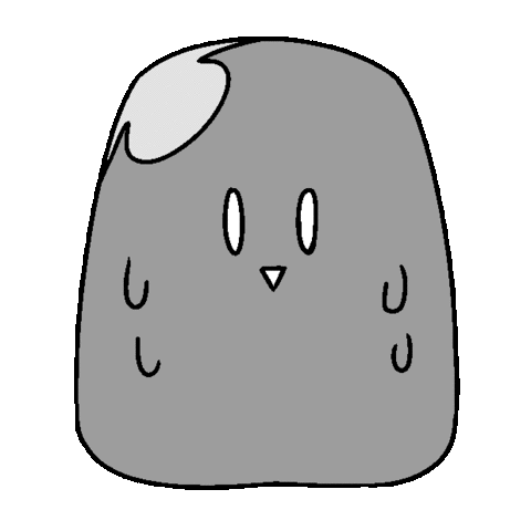 A red, blob-like cartoon character sweating with anxiety, conveying feelings of awkwardness and nervousness.