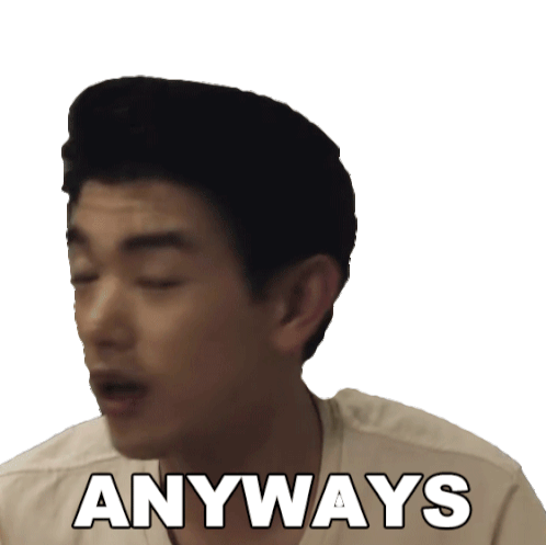 Eric Nam looks directly at the camera, saying 'Anyways' with a slight shrug, indicating a desire to move on.