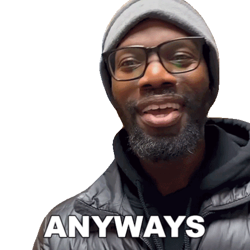 Rich Benoit, a man wearing glasses and a hat, says 'Anyways' with a slight head nod.