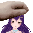 Aoi Kagayaki, a pixel art anime girl with purple hair, is placed on a hand in this charming animated sticker.