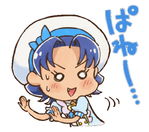 a drawing of a girl with blue hair and a white hat