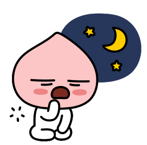 Apeach yawns sleepily, dreaming of the night sky, then lies down for a rest, ready to drift off to sleep.