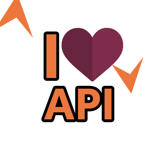 An animated sticker featuring the text 'I ❤️ API' with the 'I' and 'API' in orange, and a purple heart, surrounded by moving orange arrows.