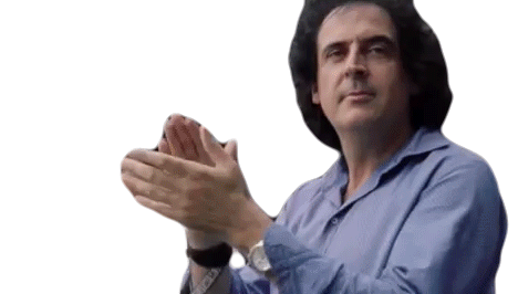 Man, possibly from Taburete, clapping enthusiastically, showing happiness and approval with a pleased expression.