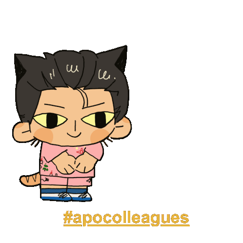 Apo Nattawin, a cute cartoon character with cat ears, bows deeply in a gesture of thanks or respect, ready to convey gratitude.