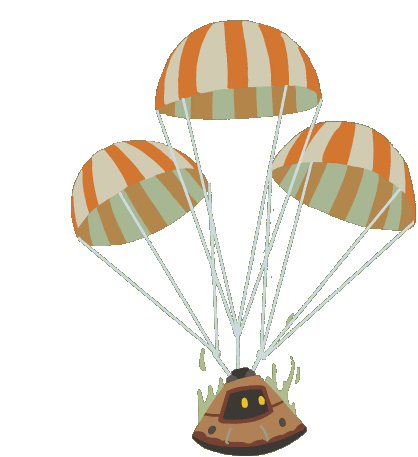Apollo 11 Command Module descends with parachutes, creating a steamy splashdown effect, linked to Neil Armstrong and Brent Noll.
