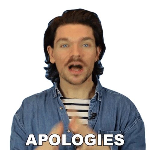 Robin James, the YouTuber, makes a sincere gesture of apology with open hands and the caption "APOLOGIES."