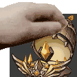 A close-up of a hand holding a glowing candle, possibly related to Apricity Orb Sama, within a dark, mysterious setting.