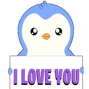 A cartoon penguin holds an "I LOVE YOU" sign, then gets pied in the face, revealing "Happy April Fool's Day."