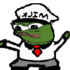 a cartoon frog wearing a white hat with the word jim on it .