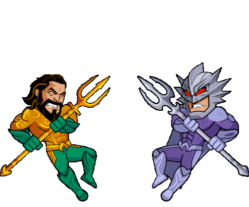 Aquaman and Orm Marius, the Ocean Master, engage in an epic trident battle in this animated sticker.