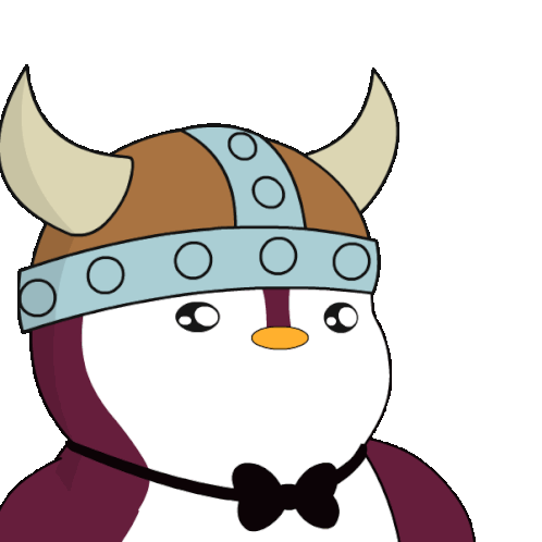 A cute cartoon penguin in a Viking helmet reacts with wide-eyed fear to a dangling spider, illustrating arachnophobia.