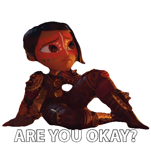Maya from Maya and the Three, voiced by Zoe Saldana, asks "Are you okay?" with a concerned expression.