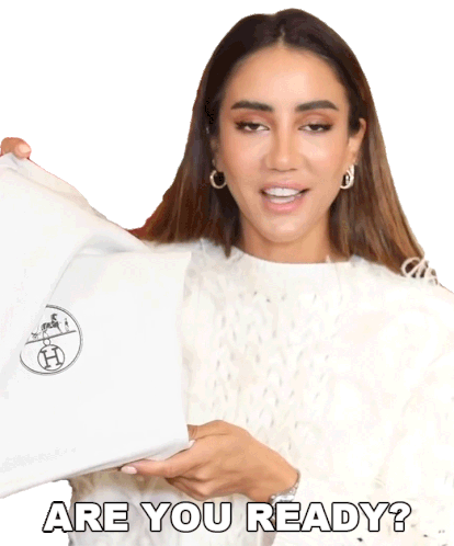 Tamara Kalinic excitedly asks 'Are you ready?' while holding a white luxury shopping bag, anticipating an unboxing.
