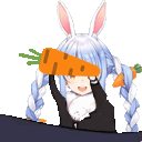 Julia, wearing bunny ears and holding a carrot, is featured in this sticker related to Ares.
