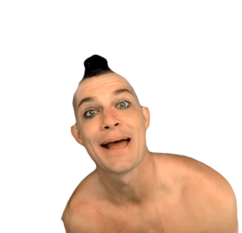 Adrian Young, drummer of No Doubt, shows an exaggerated 'Argh' expression with wide eyes and an open mouth.