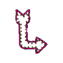 A vibrant pink neon-style arrow with yellow lights points right, indicating direction with a playful tilt.