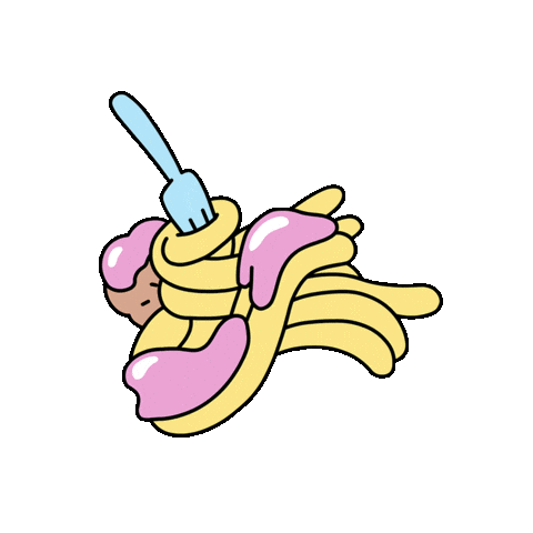 a cartoon drawing of a person holding a fork in a stack of french fries .
