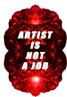 A vibrant digital art sticker featuring the bold statement 'ARTIST IS NOT A JOB' in pink text on a golden, abstract background.
